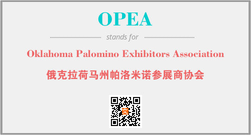 上述内容是“Oklahoma Palomino Exhibitors Association”作为“OPEA”的缩写,解释为“俄克拉荷马州帕洛米诺参展商协会”时的信息,以及英文缩略词OPEA所代表的英文单词,其对应的中文拼音、详细解释以及在英文中的流行度和相关分类、应用领域及应用示例等。