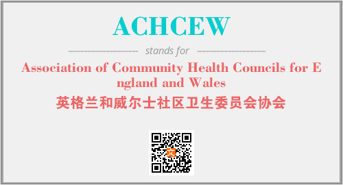 上述内容是“Association of Community Health Councils for England and Wales”作为“ACHCEW”的缩写,解释为“英格兰和威尔士社区卫生委员会协会”时的信息,以及英文缩略词ACHCEW所代表的英文单词,其对应的中文拼音、详细解释以及在英文中的流行度和相关分类、应用领域及应用示例等。