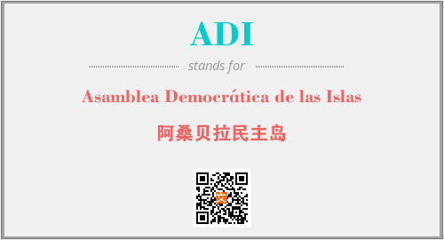 英文缩略词“ADI”经常作为“Asamblea Democrática de las Islas”的英文缩写来使用,中文表示:“阿桑贝拉民主岛”。本文将详细介绍英文缩写词ADI所代表英文单词,其对应的中文拼音、详细解释以及在英语中的流行度。此外,还有关于缩略词ADI的分类、应用领域及相关应用示例等。