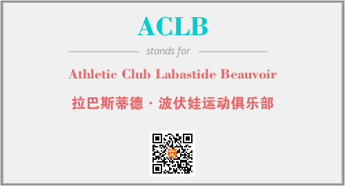 上述内容是“Athletic Club Labastide Beauvoir”作为“ACLB”的缩写,解释为“拉巴斯蒂德·波伏娃运动俱乐部”时的信息,以及英文缩略词ACLB所代表的英文单词,其对应的中文拼音、详细解释以及在英文中的流行度和相关分类、应用领域及应用示例等。