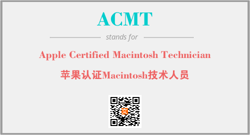 英文缩略词“ACMT”经常作为“Apple Certified Macintosh Technician”的英文缩写来使用,中文表示:“苹果认证Macintosh技术人员”。本文将详细介绍英文缩写词ACMT所代表英文单词,其对应的中文拼音、详细解释以及在英语中的流行度。此外,还有关于缩略词ACMT的分类、应用领域及相关应用示例等。
