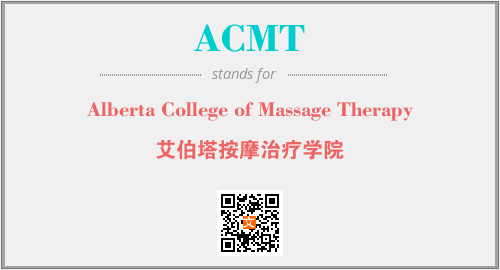 英文缩略词“ACMT”经常作为“Alberta College of Massage Therapy”的英文缩写来使用,中文表示:“艾伯塔按摩治疗学院”。本文将详细介绍英文缩写词ACMT所代表英文单词,其对应的中文拼音、详细解释以及在英语中的流行度。此外,还有关于缩略词ACMT的分类、应用领域及相关应用示例等。