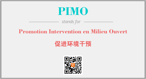 上述内容是“Promotion Intervention en Milieu Ouvert”作为“PIMO”的缩写,解释为“促进环境干预”时的信息,以及英文缩略词PIMO所代表的英文单词,其对应的中文拼音、详细解释以及在英文中的流行度和相关分类、应用领域及应用示例等。
