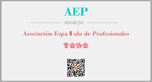 上述内容是“Asociación Española de Profesionales”作为“AEP”的缩写,解释为“专业协会”时的信息,以及英文缩略词AEP所代表的英文单词,其对应的中文拼音、详细解释以及在英文中的流行度和相关分类、应用领域及应用示例等。