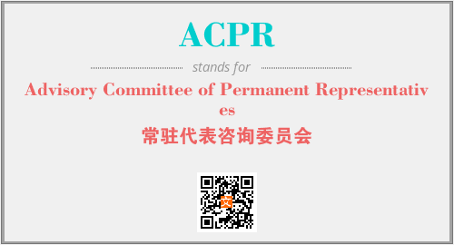 上述内容是“Advisory Committee of Permanent Representatives”作为“ACPR”的缩写,解释为“常驻代表咨询委员会”时的信息,以及英文缩略词ACPR所代表的英文单词,其对应的中文拼音、详细解释以及在英文中的流行度和相关分类、应用领域及应用示例等。
