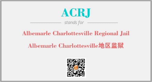 上述内容是“Albemarle Charlottesville Regional Jail”作为“ACRJ”的缩写,解释为“Albemarle Charlottesville地区监狱”时的信息,以及英文缩略词ACRJ所代表的英文单词,其对应的中文拼音、详细解释以及在英文中的流行度和相关分类、应用领域及应用示例等。