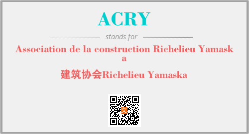 以上为Association de la construction Richelieu Yamaska英文缩略词ACRY的中文解释,以及该英文缩写在英语的流行度、分类和应用领域方面的信息。
