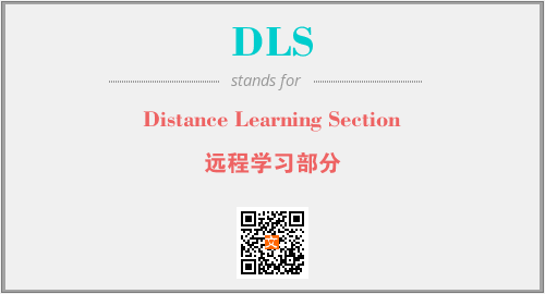 英文缩略词“DLS”经常作为“Distance Learning Section”的英文缩写来使用,中文表示:“远程学习部分”。本文将详细介绍英文缩写词DLS所代表英文单词,其对应的中文拼音、详细解释以及在英语中的流行度。此外,还有关于缩略词DLS的分类、应用领域及相关应用示例等。