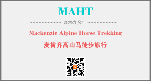 上述内容是“Mackenzie Alpine Horse Trekking”作为“MAHT”的缩写,解释为“麦肯齐高山马徒步旅行”时的信息,以及英文缩略词MAHT所代表的英文单词,其对应的中文拼音、详细解释以及在英文中的流行度和相关分类、应用领域及应用示例等。