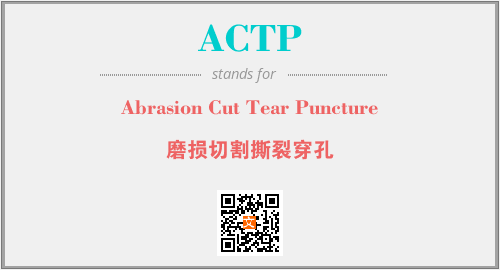 英文缩略词“ACTP”经常作为“Abrasion Cut Tear Puncture”的英文缩写来使用,中文表示:“磨损切割撕裂穿孔”。本文将详细介绍英文缩写词ACTP所代表英文单词,其对应的中文拼音、详细解释以及在英语中的流行度。此外,还有关于缩略词ACTP的分类、应用领域及相关应用示例等。