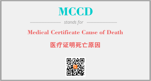 上述内容是“Medical Certificate Cause of Death”作为“MCCD”的缩写,解释为“医疗证明死亡原因”时的信息,以及英文缩略词MCCD所代表的英文单词,其对应的中文拼音、详细解释以及在英文中的流行度和相关分类、应用领域及应用示例等。