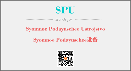 上述内容是“Syomnoe Podayuschee Ustrojstvo”作为“SPU”的缩写,解释为“Syomnoe Podayuschee设备”时的信息,以及英文缩略词SPU所代表的英文单词,其对应的中文拼音、详细解释以及在英文中的流行度和相关分类、应用领域及应用示例等。