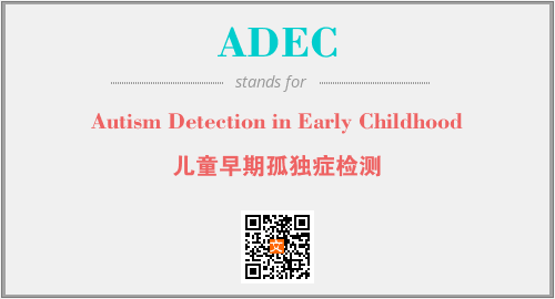 上述内容是“Autism Detection in Early Childhood”作为“ADEC”的缩写,解释为“儿童早期孤独症检测”时的信息,以及英文缩略词ADEC所代表的英文单词,其对应的中文拼音、详细解释以及在英文中的流行度和相关分类、应用领域及应用示例等。