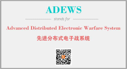 英文缩略词“ADEWS”经常作为“Advanced Distributed Electronic Warfare System”的英文缩写来使用,中文表示:“先进分布式电子战系统”。本文将详细介绍英文缩写词ADEWS所代表英文单词,其对应的中文拼音、详细解释以及在英语中的流行度。此外,还有关于缩略词ADEWS的分类、应用领域及相关应用示例等。