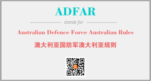 以上为Australian Defence Force Australian Rules英文缩略词ADFAR的中文解释,以及该英文缩写在英语的流行度、分类和应用领域方面的信息。