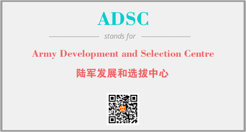 上述内容是“Army Development and Selection Centre”作为“ADSC”的缩写,解释为“陆军发展和选拔中心”时的信息,以及英文缩略词ADSC所代表的英文单词,其对应的中文拼音、详细解释以及在英文中的流行度和相关分类、应用领域及应用示例等。