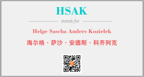 上述内容是“Helge Sascha Anders Kozielek”作为“HSAK”的缩写,解释为“海尔格·萨沙·安德斯·科齐列克”时的信息,以及英文缩略词HSAK所代表的英文单词,其对应的中文拼音、详细解释以及在英文中的流行度和相关分类、应用领域及应用示例等。