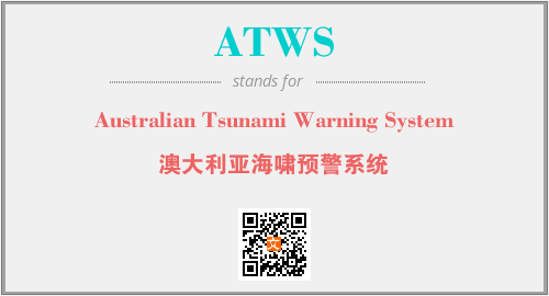 英文缩略词“ATWS”经常作为“Australian Tsunami Warning System”的英文缩写来使用,中文表示:“澳大利亚海啸预警系统”。本文将详细介绍英文缩写词ATWS所代表英文单词,其对应的中文拼音、详细解释以及在英语中的流行度。此外,还有关于缩略词ATWS的分类、应用领域及相关应用示例等。