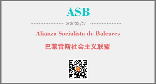 英文缩略词“ASB”经常作为“Alianza Socialista de Baleares”的英文缩写来使用,中文表示:“巴莱雷斯社会主义联盟”。本文将详细介绍英文缩写词ASB所代表英文单词,其对应的中文拼音、详细解释以及在英语中的流行度。此外,还有关于缩略词ASB的分类、应用领域及相关应用示例等。
