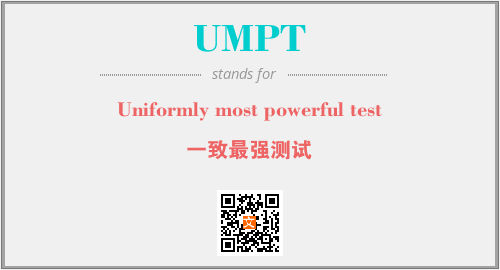 上述内容是“Uniformly most powerful test”作为“UMPT”的缩写,解释为“一致最强测试”时的信息,以及英文缩略词UMPT所代表的英文单词,其对应的中文拼音、详细解释以及在英文中的流行度和相关分类、应用领域及应用示例等。