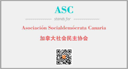 上述内容是“Asociación Socialdemócrata Canaria”作为“ASC”的缩写,解释为“加拿大社会民主协会”时的信息,以及英文缩略词ASC所代表的英文单词,其对应的中文拼音、详细解释以及在英文中的流行度和相关分类、应用领域及应用示例等。