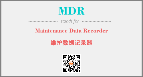 英文缩略词“MDR”经常作为“Maintenance Data Recorder”的英文缩写来使用,中文表示:“维护数据记录器”。本文将详细介绍英文缩写词MDR所代表英文单词,其对应的中文拼音、详细解释以及在英语中的流行度。此外,还有关于缩略词MDR的分类、应用领域及相关应用示例等。