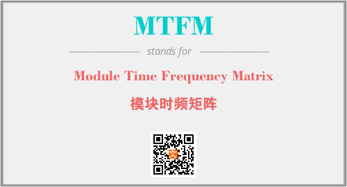 上述内容是“Module Time Frequency Matrix”作为“MTFM”的缩写,解释为“模块时频矩阵”时的信息,以及英文缩略词MTFM所代表的英文单词,其对应的中文拼音、详细解释以及在英文中的流行度和相关分类、应用领域及应用示例等。