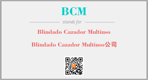 英文缩略词“BCM”经常作为“Blindado Cazador Multiuso”的英文缩写来使用,中文表示:“Blindado Cazador Multiuso公司”。本文将详细介绍英文缩写词BCM所代表英文单词,其对应的中文拼音、详细解释以及在英语中的流行度。此外,还有关于缩略词BCM的分类、应用领域及相关应用示例等。