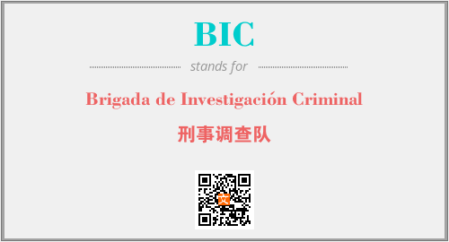 英文缩略词“BIC”经常作为“Brigada de Investigación Criminal”的英文缩写来使用,中文表示:“刑事调查队”。本文将详细介绍英文缩写词BIC所代表英文单词,其对应的中文拼音、详细解释以及在英语中的流行度。此外,还有关于缩略词BIC的分类、应用领域及相关应用示例等。