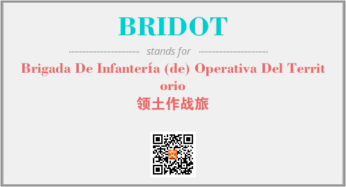 上述内容是“Brigada De Infantería (de) Operativa Del Territorio”作为“BRIDOT”的缩写,解释为“领土作战旅”时的信息,以及英文缩略词BRIDOT所代表的英文单词,其对应的中文拼音、详细解释以及在英文中的流行度和相关分类、应用领域及应用示例等。