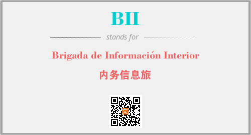 英文缩略词“BII”经常作为“Brigada de Información Interior”的英文缩写来使用,中文表示:“内务信息旅”。本文将详细介绍英文缩写词BII所代表英文单词,其对应的中文拼音、详细解释以及在英语中的流行度。此外,还有关于缩略词BII的分类、应用领域及相关应用示例等。