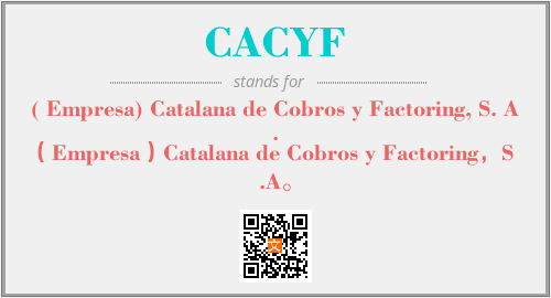上述内容是“( Empresa) Catalana de Cobros y Factoring, S. A.”作为“CACYF”的缩写,解释为“(Empresa)Catalana de Cobros y Factoring,S.A。”时的信息,以及英文缩略词CACYF所代表的英文单词,其对应的中文拼音、详细解释以及在英文中的流行度和相关分类、应用领域及应用示例等。