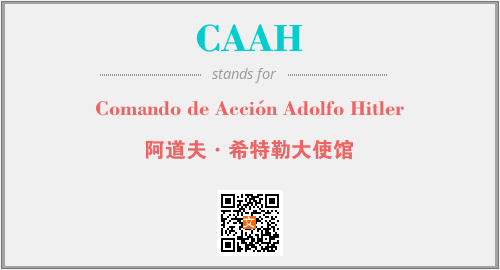 上述内容是“Comando de Acción Adolfo Hitler”作为“CAAH”的缩写,解释为“阿道夫·希特勒大使馆”时的信息,以及英文缩略词CAAH所代表的英文单词,其对应的中文拼音、详细解释以及在英文中的流行度和相关分类、应用领域及应用示例等。
