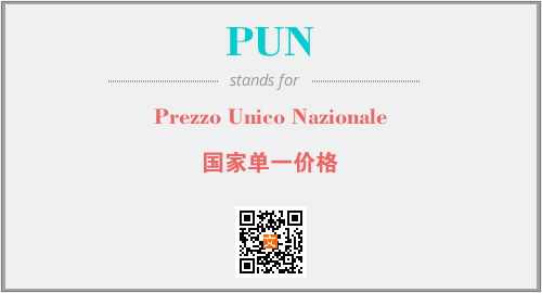 英文缩略词“PUN”经常作为“Prezzo Unico Nazionale”的英文缩写来使用,中文表示:“国家单一价格”。本文将详细介绍英文缩写词PUN所代表英文单词,其对应的中文拼音、详细解释以及在英语中的流行度。此外,还有关于缩略词PUN的分类、应用领域及相关应用示例等。