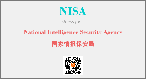 上述内容是“National Intelligence Security Agency”作为“NISA”的缩写,解释为“国家情报保安局”时的信息,以及英文缩略词NISA所代表的英文单词,其对应的中文拼音、详细解释以及在英文中的流行度和相关分类、应用领域及应用示例等。