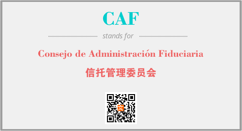 英文缩略词“CAF”经常作为“Consejo de Administración Fiduciaria”的英文缩写来使用,中文表示:“信托管理委员会”。本文将详细介绍英文缩写词CAF所代表英文单词,其对应的中文拼音、详细解释以及在英语中的流行度。此外,还有关于缩略词CAF的分类、应用领域及相关应用示例等。