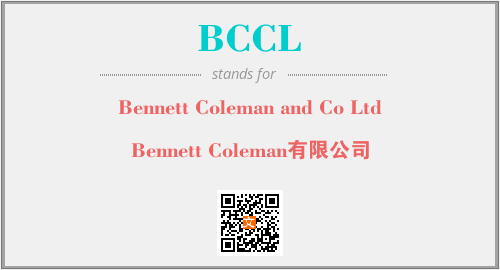 上述内容是“Bennett Coleman and Co Ltd”作为“BCCL”的缩写,解释为“Bennett Coleman有限公司”时的信息,以及英文缩略词BCCL所代表的英文单词,其对应的中文拼音、详细解释以及在英文中的流行度和相关分类、应用领域及应用示例等。
