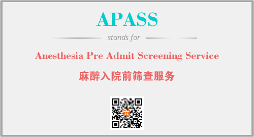 上述内容是“Anesthesia Pre Admit Screening Service”作为“APASS”的缩写,解释为“麻醉入院前筛查服务”时的信息,以及英文缩略词APASS所代表的英文单词,其对应的中文拼音、详细解释以及在英文中的流行度和相关分类、应用领域及应用示例等。