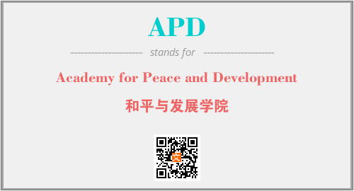 上述内容是“Academy for Peace and Development”作为“APD”的缩写,解释为“和平与发展学院”时的信息,以及英文缩略词APD所代表的英文单词,其对应的中文拼音、详细解释以及在英文中的流行度和相关分类、应用领域及应用示例等。