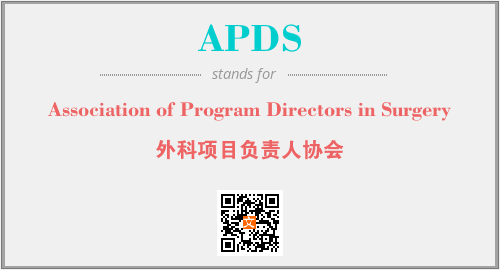 上述内容是“Association of Program Directors in Surgery”作为“APDS”的缩写,解释为“外科项目负责人协会”时的信息,以及英文缩略词APDS所代表的英文单词,其对应的中文拼音、详细解释以及在英文中的流行度和相关分类、应用领域及应用示例等。