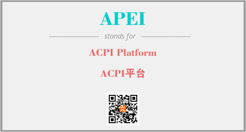 英文缩略词“APEI”经常作为“ACPI Platform”的英文缩写来使用,中文表示:“ACPI平台”。本文将详细介绍英文缩写词APEI所代表英文单词,其对应的中文拼音、详细解释以及在英语中的流行度。此外,还有关于缩略词APEI的分类、应用领域及相关应用示例等。