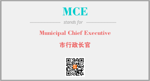 以上为Municipal Chief Executive英文缩略词MCE的中文解释,以及该英文缩写在英语的流行度、分类和应用领域方面的信息。