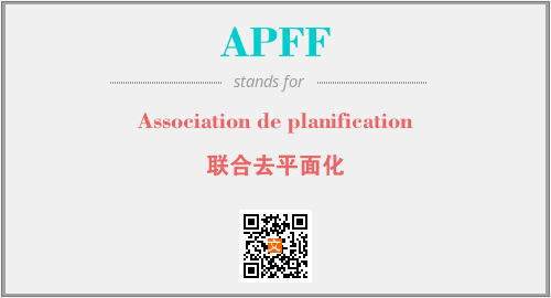 上述内容是“Association de planification”作为“APFF”的缩写,解释为“联合去平面化”时的信息,以及英文缩略词APFF所代表的英文单词,其对应的中文拼音、详细解释以及在英文中的流行度和相关分类、应用领域及应用示例等。