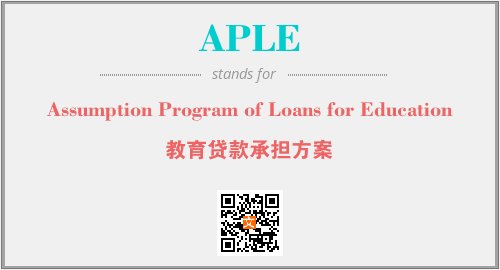 上述内容是“Assumption Program of Loans for Education”作为“APLE”的缩写,解释为“教育贷款承担方案”时的信息,以及英文缩略词APLE所代表的英文单词,其对应的中文拼音、详细解释以及在英文中的流行度和相关分类、应用领域及应用示例等。