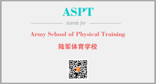 英文缩略词“ASPT”经常作为“Army School of Physical Training”的英文缩写来使用,中文表示:“陆军体育学校”。本文将详细介绍英文缩写词ASPT所代表英文单词,其对应的中文拼音、详细解释以及在英语中的流行度。此外,还有关于缩略词ASPT的分类、应用领域及相关应用示例等。