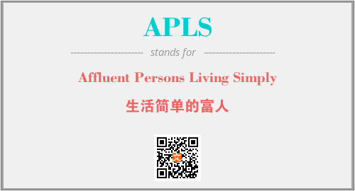 英文缩略词“APLS”经常作为“Affluent Persons Living Simply”的英文缩写来使用,中文表示:“生活简单的富人”。本文将详细介绍英文缩写词APLS所代表英文单词,其对应的中文拼音、详细解释以及在英语中的流行度。此外,还有关于缩略词APLS的分类、应用领域及相关应用示例等。