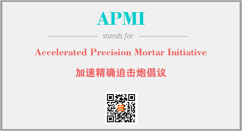 上述内容是“Accelerated Precision Mortar Initiative”作为“APMI”的缩写,解释为“加速精确迫击炮倡议”时的信息,以及英文缩略词APMI所代表的英文单词,其对应的中文拼音、详细解释以及在英文中的流行度和相关分类、应用领域及应用示例等。