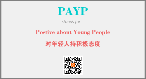 上述内容是“Postive about Young People”作为“PAYP”的缩写,解释为“对年轻人持积极态度”时的信息,以及英文缩略词PAYP所代表的英文单词,其对应的中文拼音、详细解释以及在英文中的流行度和相关分类、应用领域及应用示例等。