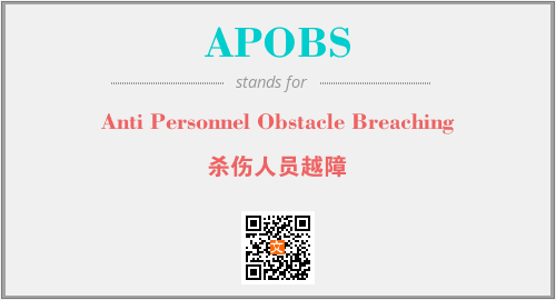 上述内容是“Anti Personnel Obstacle Breaching”作为“APOBS”的缩写,解释为“杀伤人员越障”时的信息,以及英文缩略词APOBS所代表的英文单词,其对应的中文拼音、详细解释以及在英文中的流行度和相关分类、应用领域及应用示例等。