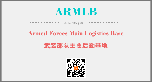 英文缩略词“ARMLB”经常作为“Armed Forces Main Logistics Base”的英文缩写来使用,中文表示:“武装部队主要后勤基地”。本文将详细介绍英文缩写词ARMLB所代表英文单词,其对应的中文拼音、详细解释以及在英语中的流行度。此外,还有关于缩略词ARMLB的分类、应用领域及相关应用示例等。